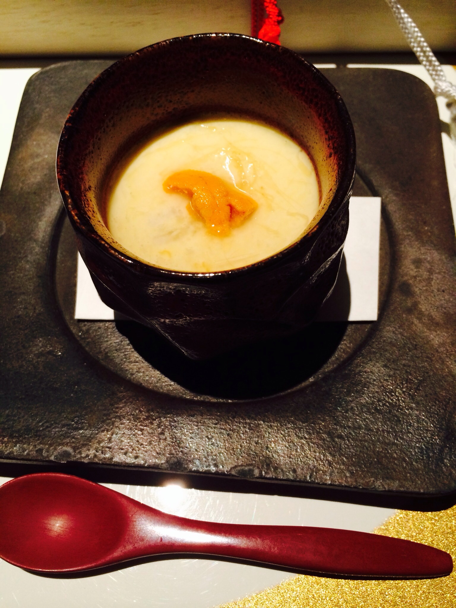 うに、白子、牡蠣、ふかひれの入ったなんとも贅沢な茶碗蒸し