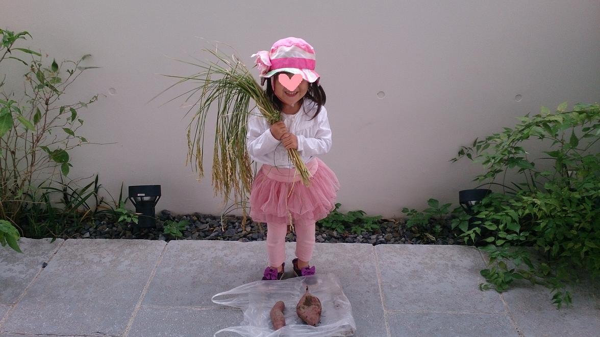 今日は下の娘が野外教育の習い事で、お米とさつまいもの収穫をしてきたようです。