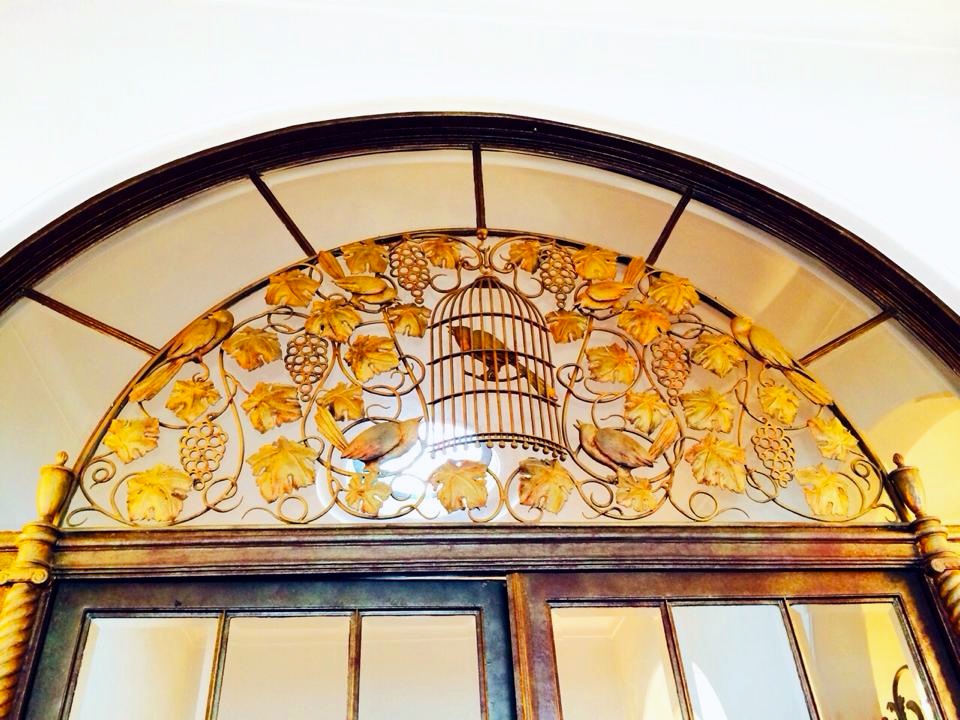 玄関の欄間の装飾は、ぶどうと鳥と鳥かご。