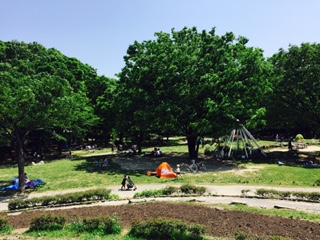 サイクリングしてみて思ったのは、名城公園はとても広くて緑が豊富で、体操している方、踊っている方、将棋を指している方、テントを張っている方など、色んな遊び方ができるみたいです