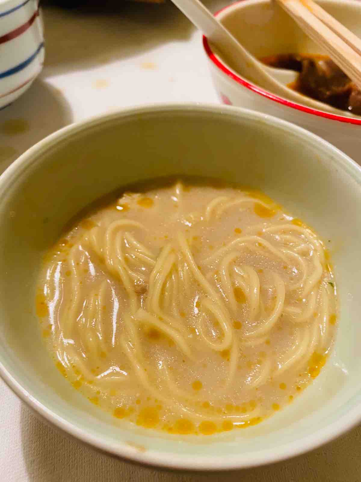 〆の麺は、紅白両方に。これは、どちらも違うおいしさ。ここまで食べたら大満足!