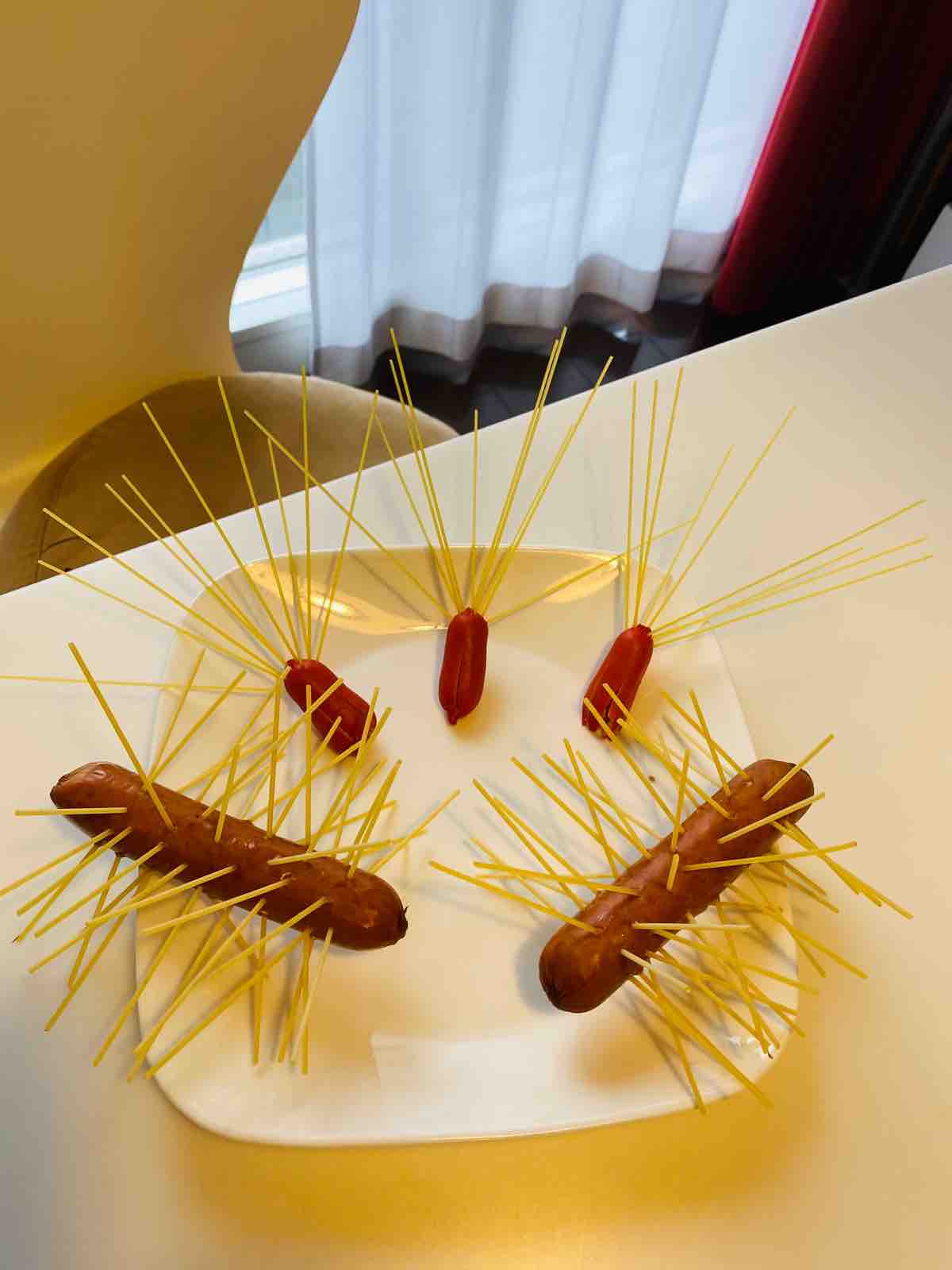 #hairedsausage #フランクフルトソーセージにスパゲッティ #ソーセー人 #デコ料理
