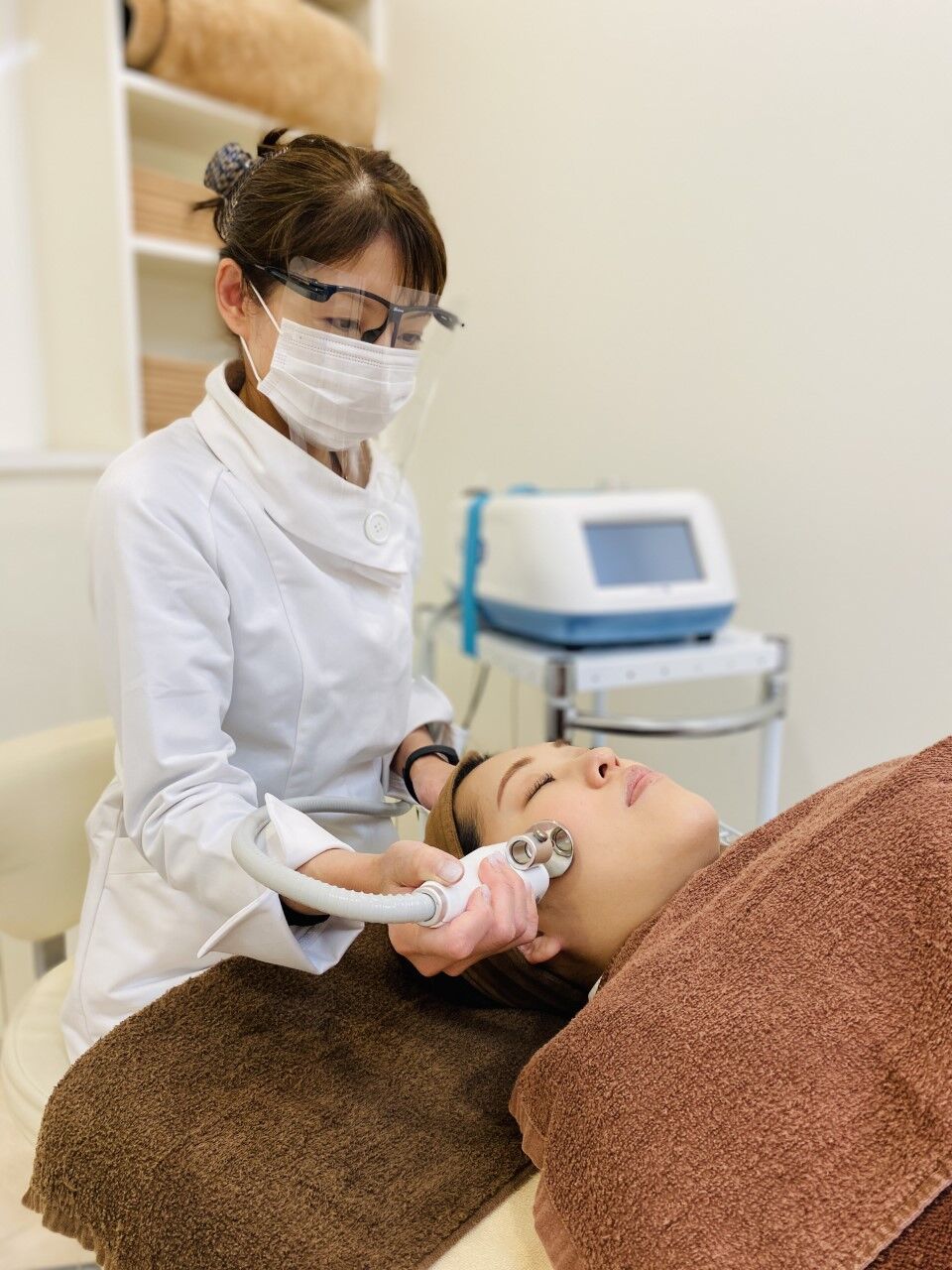 ラボでは、飛沫感染防止のために、施術時にアクリル製フェイスガードの使用しております。