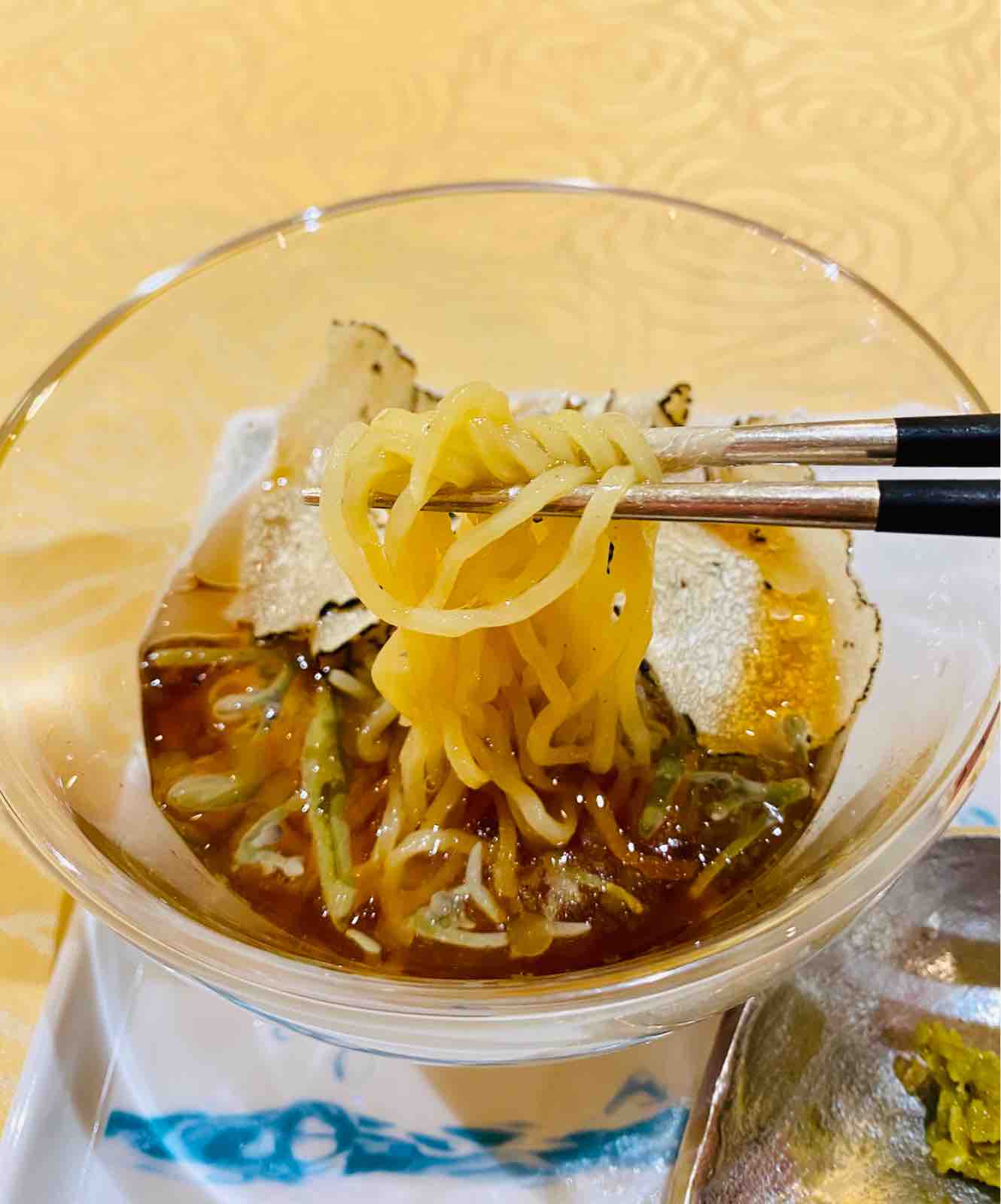 三河牛の優しい脂の爽やかさにも感動しましたが、〆は「冷製じゅんさいラーメン」がスゴイ!