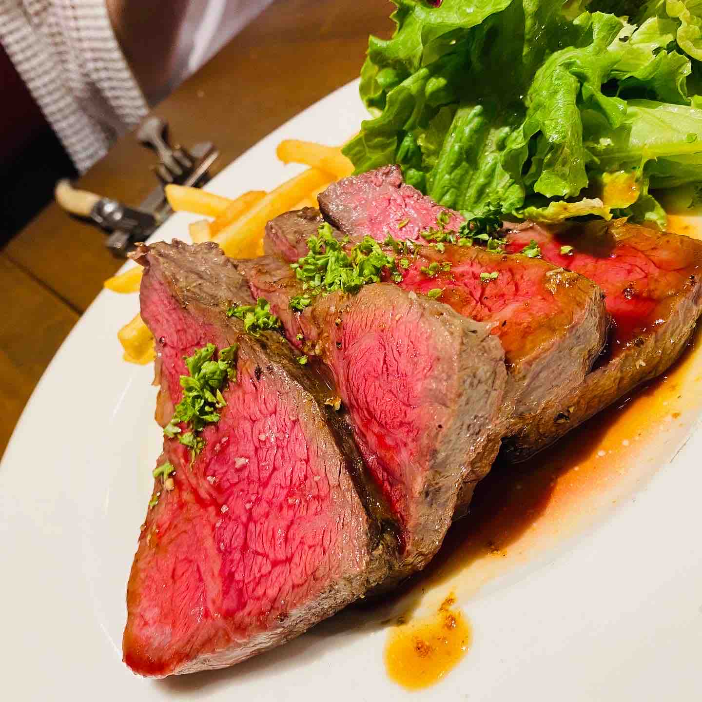 がっつり赤身のランプ肉!もちろん、たっぷりフレンチフライもね