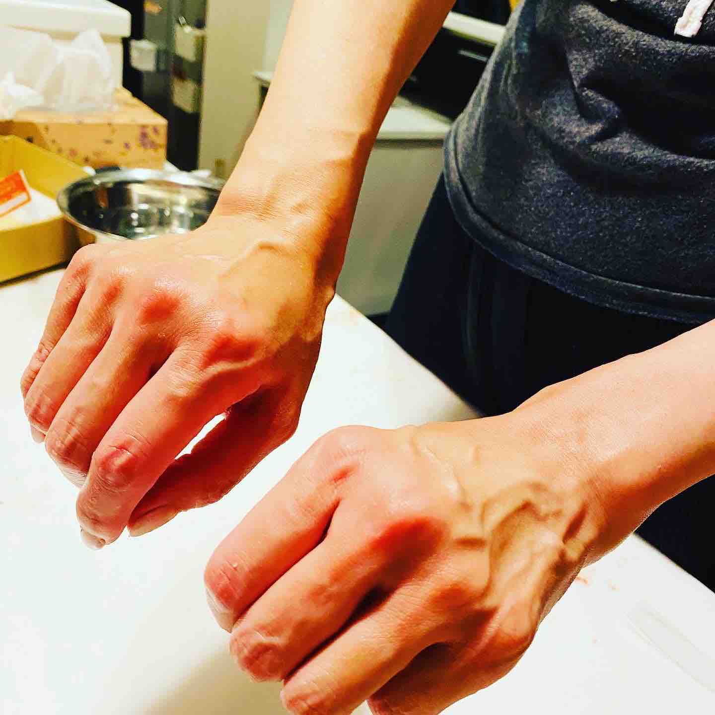 終わってみたら、両手が真っ赤⁉️ 明日、仕事大丈夫かしら?