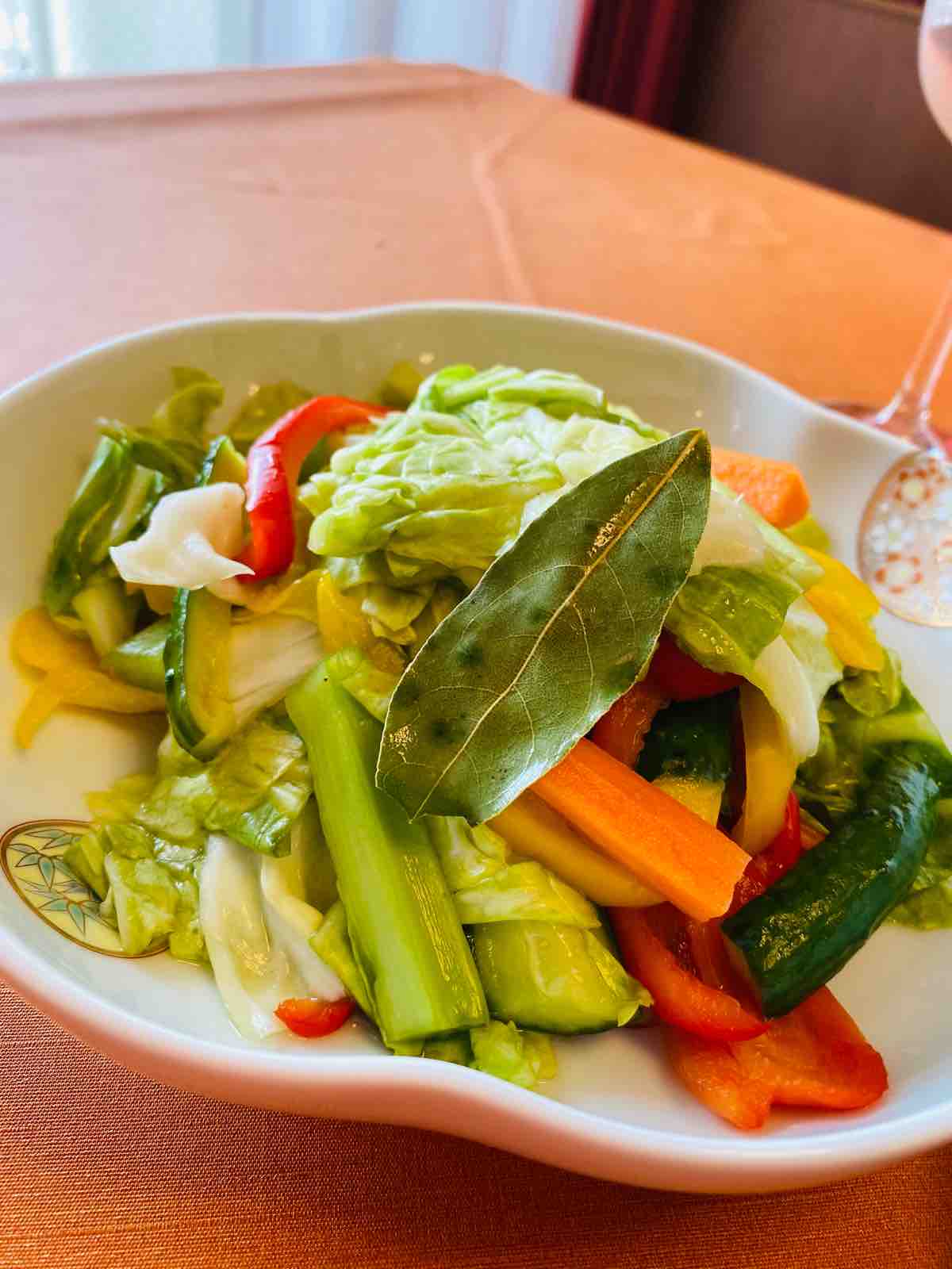 レンコンの和出汁ピクルス、キュウリのトムヤム漬、長芋のレモングラスエスニック漬け、そしてキャベツとパブリカの盛り盛りサワーサラダ。