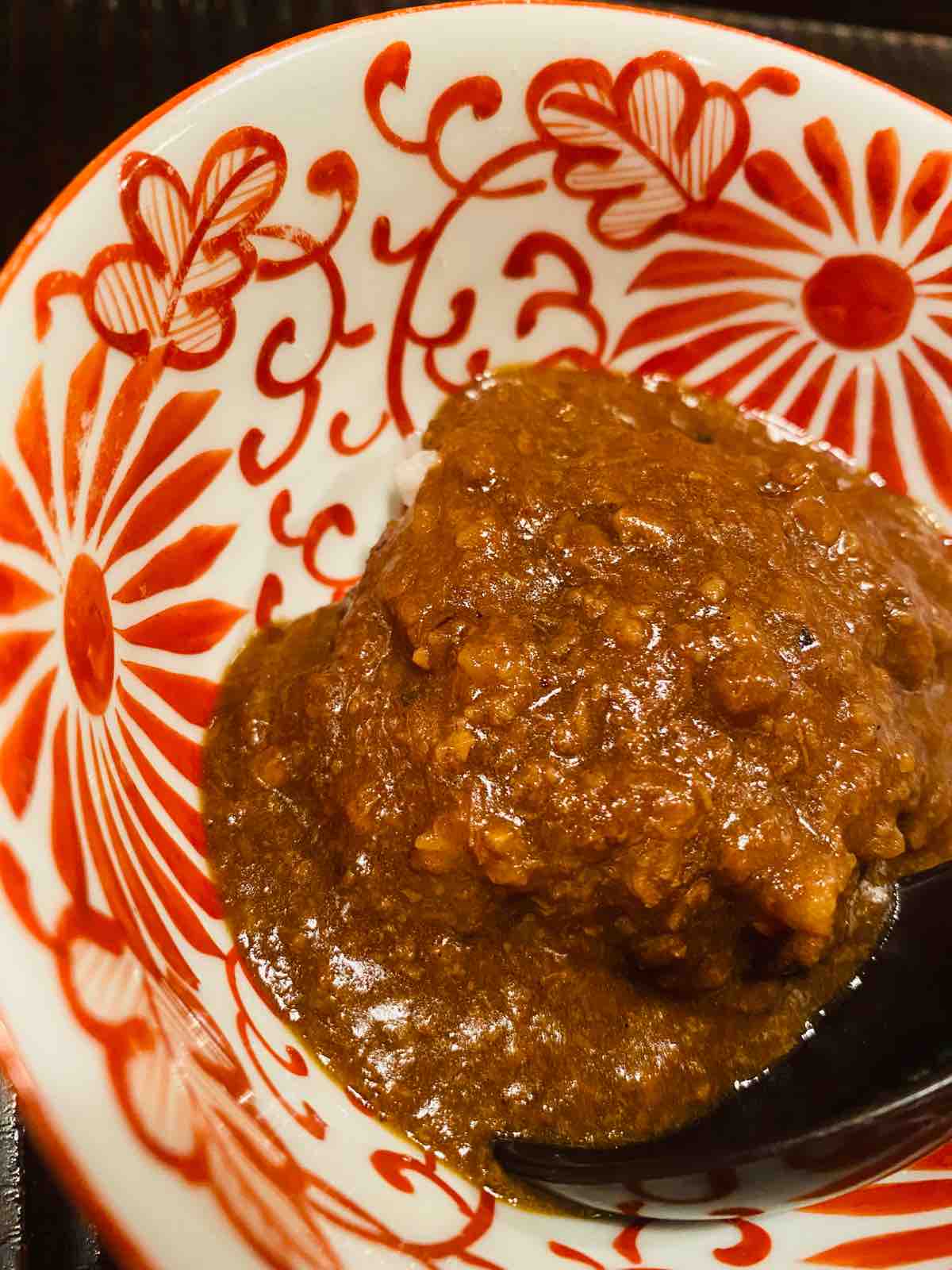 しかしこの牛丼が予想外。吉野家風を想像していたのですが、ご飯の上にたっぷり敷き詰められた柔らかくてトロけるようなレア牛肉に山椒と卵黄。