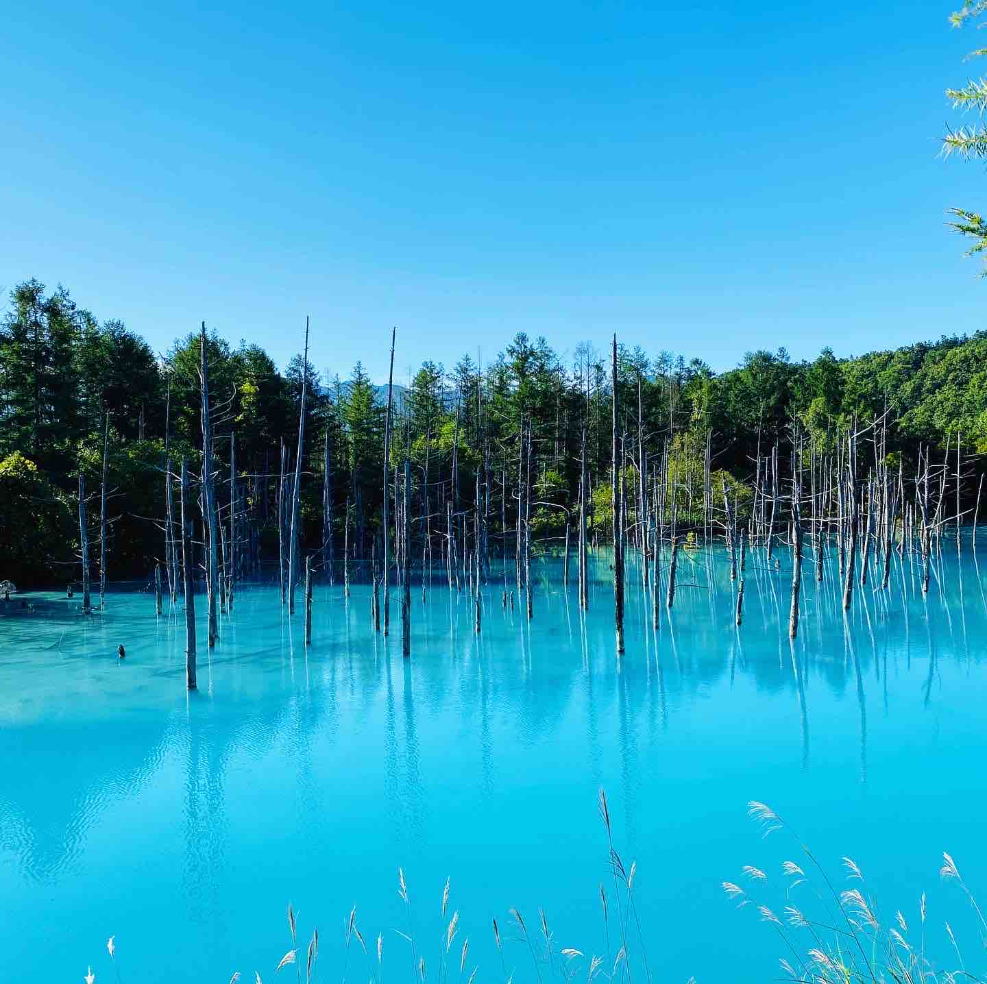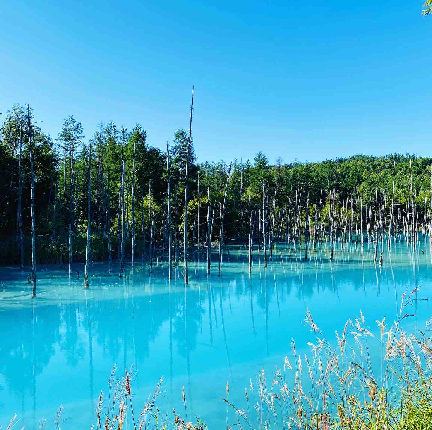 富良野「青い池」早起きして一番乗り!美瑛ブルーを早朝にも堪能 2020.10.20 【夏休みの思い出④】-2「青い池」 前回と同じ写真に見えますが・・・撮影時間が違います 朝食前に一番乗りした、早朝の「青い池」。 今回は落ち着いて動画もアップ 動画はコチラ→https://youtu.be/nW4i-8XiEA4 池の色は、前回の夕方より更に鮮やかに太陽に反射しています。 そして徐々に日が昇ると色に変化が…. ☆ ☆ この青、地名にちなんで「BIEI BLUE」と呼ばれているそうです。 しかし青く見えるのは陸上からだけ。 水そのものには色がついていないそうです。 自然の不思議、科学の不思議… また、冬にも来てみたいわ! #青い池 #北海道旅行 #富良野グルメ #富良野観光 #hokkaidotrip #hokkaidofood #家族旅行 #gotoキャンペーン