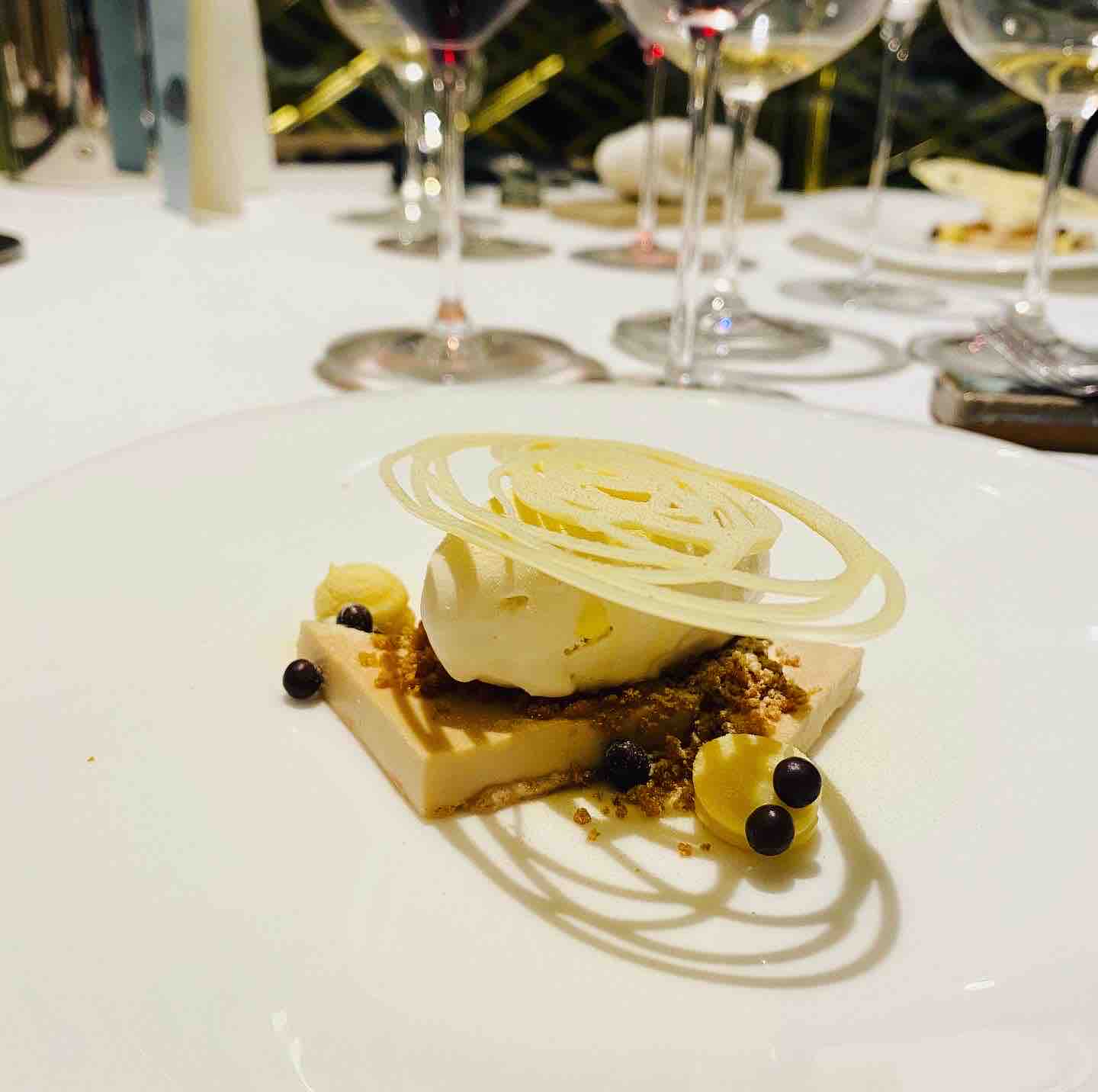 このお肉が半端なく美味しいつ!! 食感も味も「これが豚肉?」と思わせる、これまで体験したどんな豚肉とも違う不思議な美味しさ。 あー、これまた食べたいなぁ デザートの、イポレスチーズと無花果のキャラメリゼにはスペインのデザートワイン。