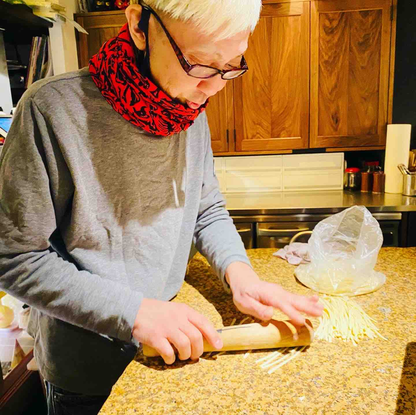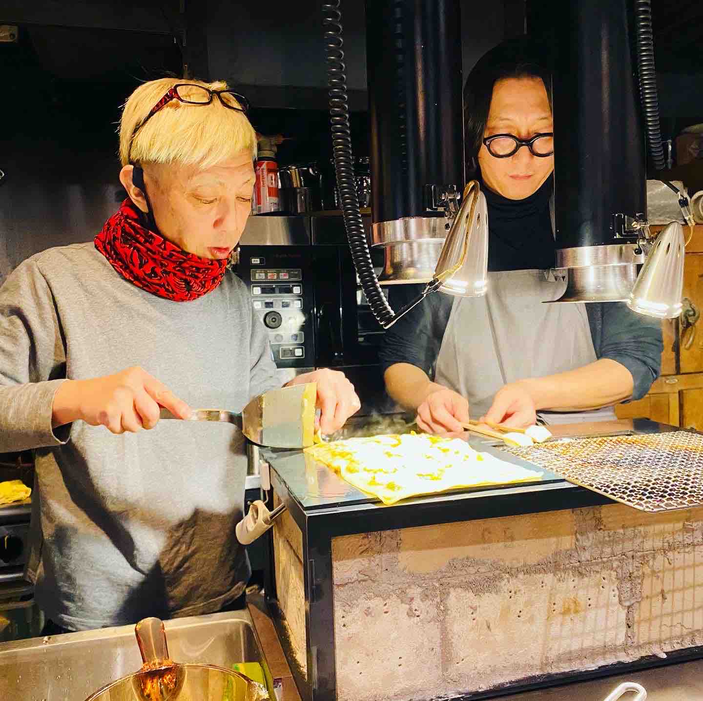 めくるめく熟成麺の世界と熟成肉のコラボはマニアックに淡々と進んでいきます….一見、2人バラバラに作業する統一感の無さ・・・