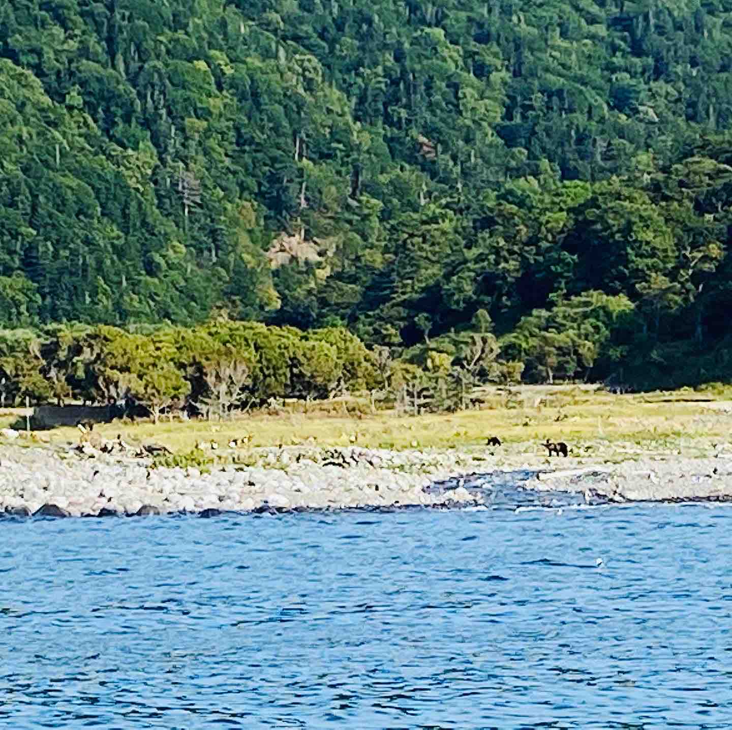 「熊だ‼️」それも親子。そして、その後ろには「鹿の群れ」が!!(ぜひ上部に貼ったYouTubeの動画をご覧ください)