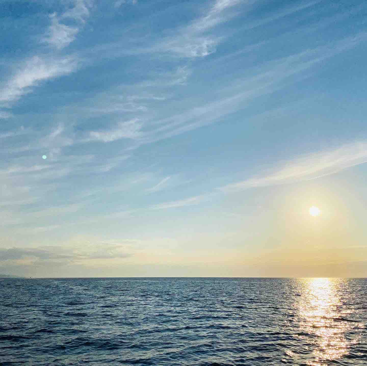 風が気持ちいいけど、波飛沫が飛んでくるほどの迫力。手を離したら、海に落ちてしまいそうで怖い〜。