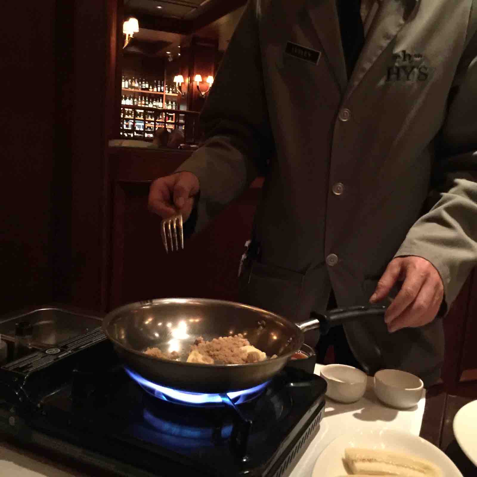 こちらも目の前にコンロを持ってきてくださり、ファイアーして熱々を仕上げてくださる、クラシカルスタイル
