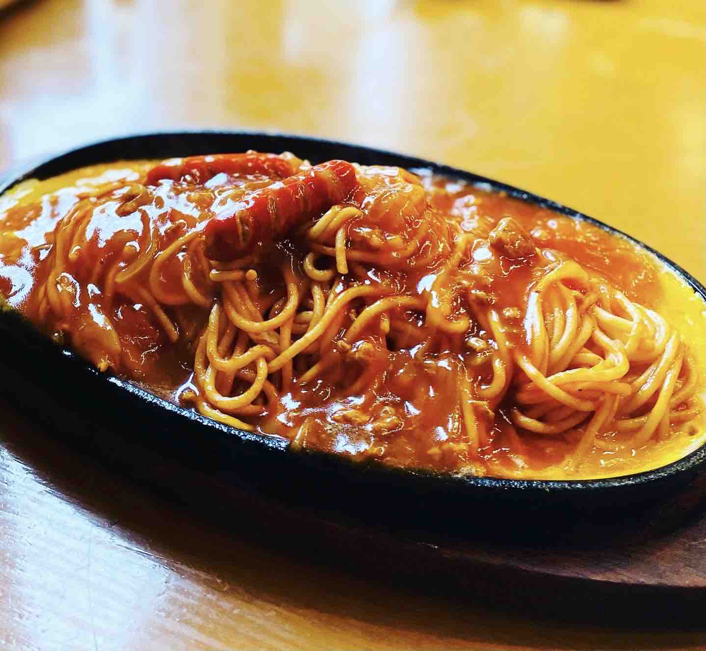 この甘さが、タバスコと粉チーズに合う合うのですもの・・・これぞ、名古屋飯の代表「鉄板イタリアンスパゲッティ」