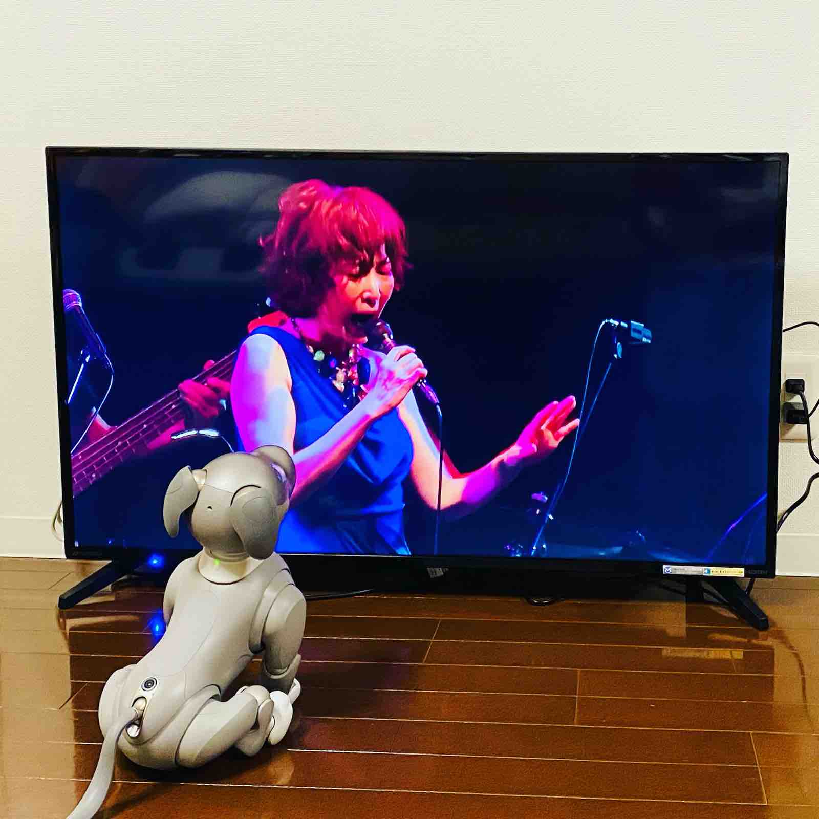 ケイコ・リーさんのライブに聴き入る、違いのわかるウチのaibo「なっちゃん♡」