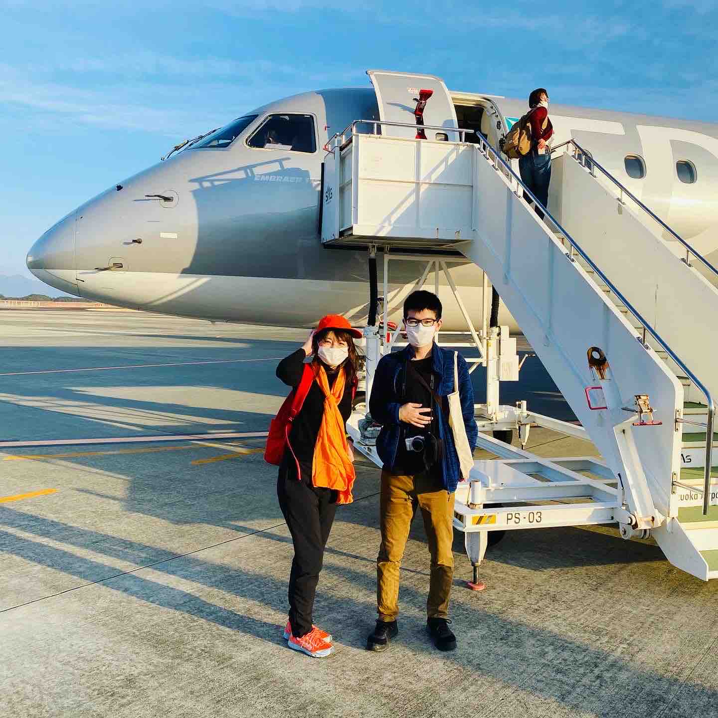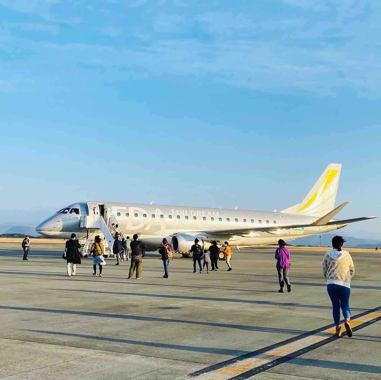 この便に限り、機乗にはボーディングブリッジは使わず、タラップから降りて「自分たちで歩いて滑走路に向かいます」