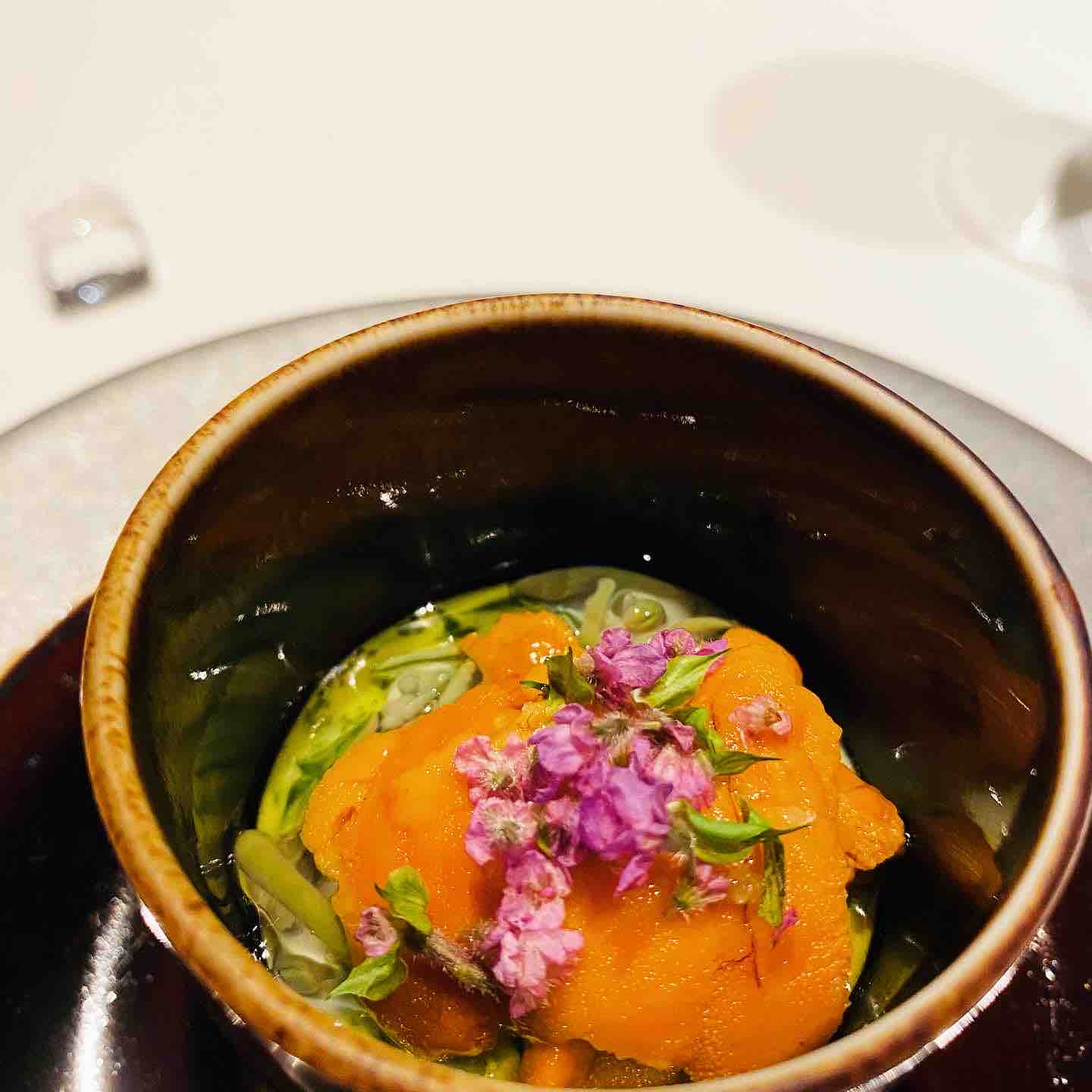 雲丹あおさジュンサイを使った爽やかな海のお皿。
