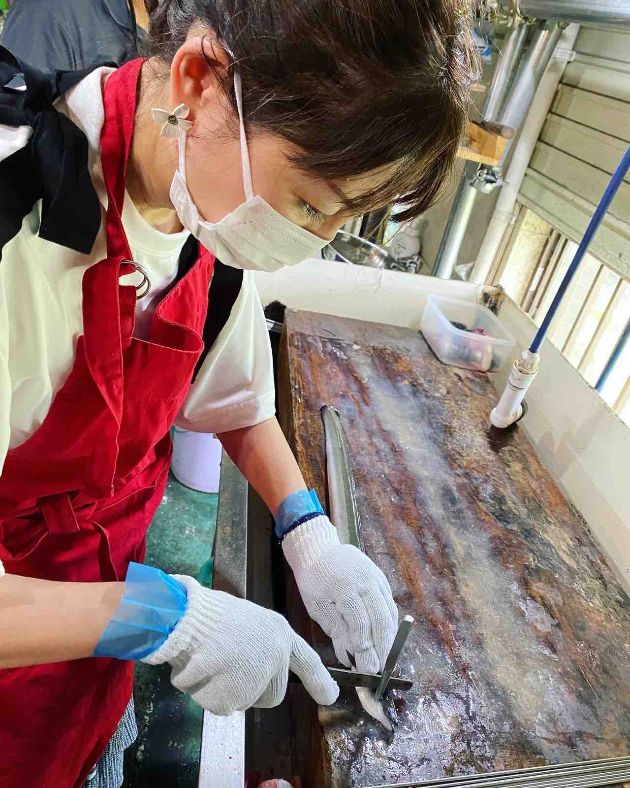 練習する間もなく、いきなり「割き&串打ち」からトライ