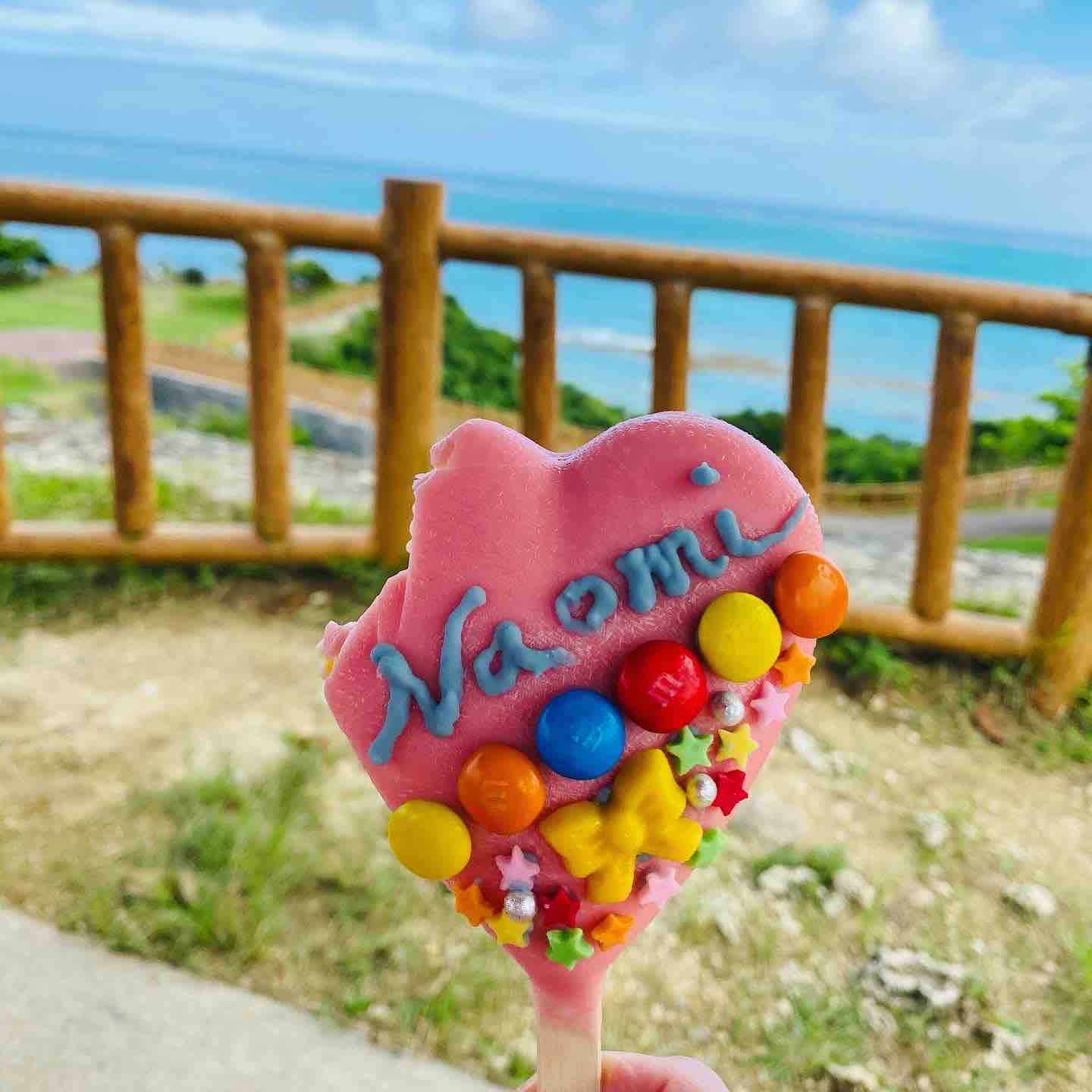 知念岬の絶景の中で食す・自分で作ったブルーシール・アイスバー♪