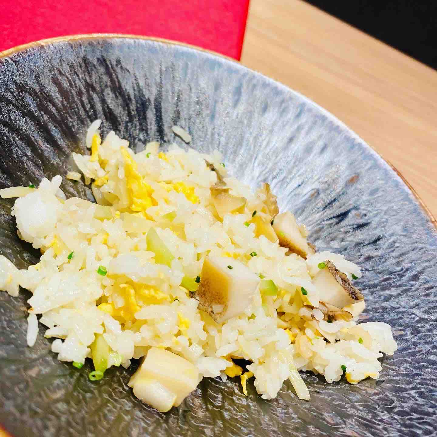 目の前で炒められた「鮑のチャーハン」が添えられます。