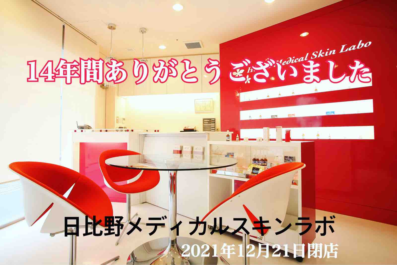 既にお客様にはお知らせしておりますが「日比野メディカルスキンラボ」は、昨日、12月21日の営業をもちまして閉店をする運びとなりました。