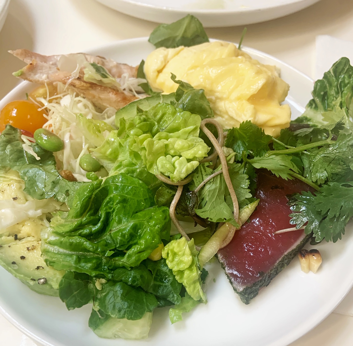 糖質制限中なので、有名なスフレパンケーキなどは我慢し、オムレツやアヒ(マグロ)ステーキ、カプレーゼ、ロコモコ(ごはん抜き)をオーダー。