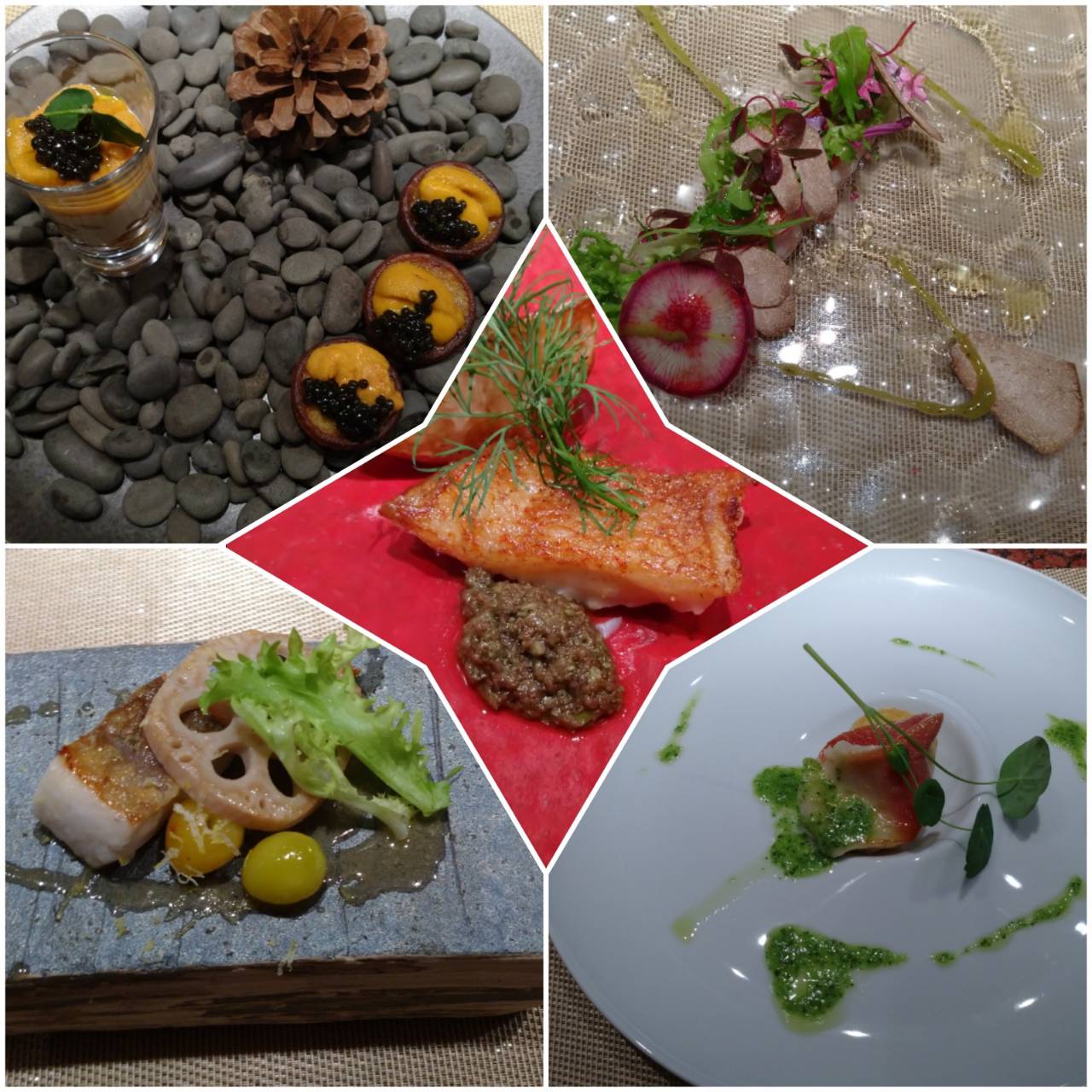 ウニ、キャビア、アワビ、トリフ、フカヒレ、キンキ、鯛、、シャトーブリアン