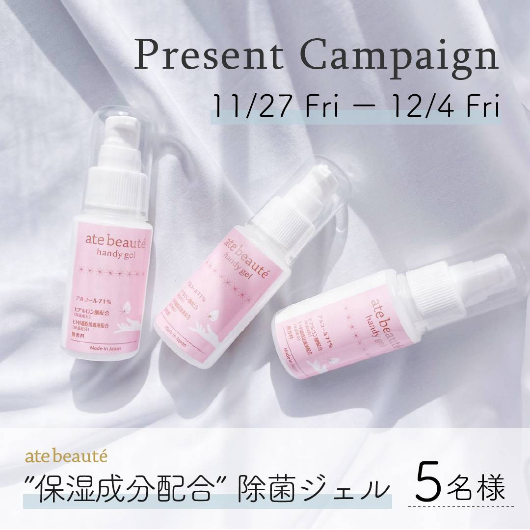 atebeaute公式 on Instagram: “【フォロー&いいね♡で参加完了!】 \保湿成分配合!除菌ジェルプレゼントキャンペーン/ アルコールによる”手荒れ”に悩んでいませんか? この冬に大活躍! 保湿成分を配合したお肌に優しい除菌ジェル✨ 5名様にプレゼントいたします!