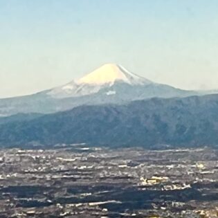 朝日に照らされた富士山を眺めながら(ピンボケ)