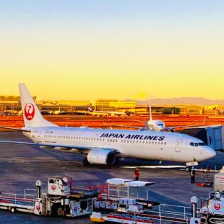 朝日に照らされた富士山を眺めながら(ピンボケ)