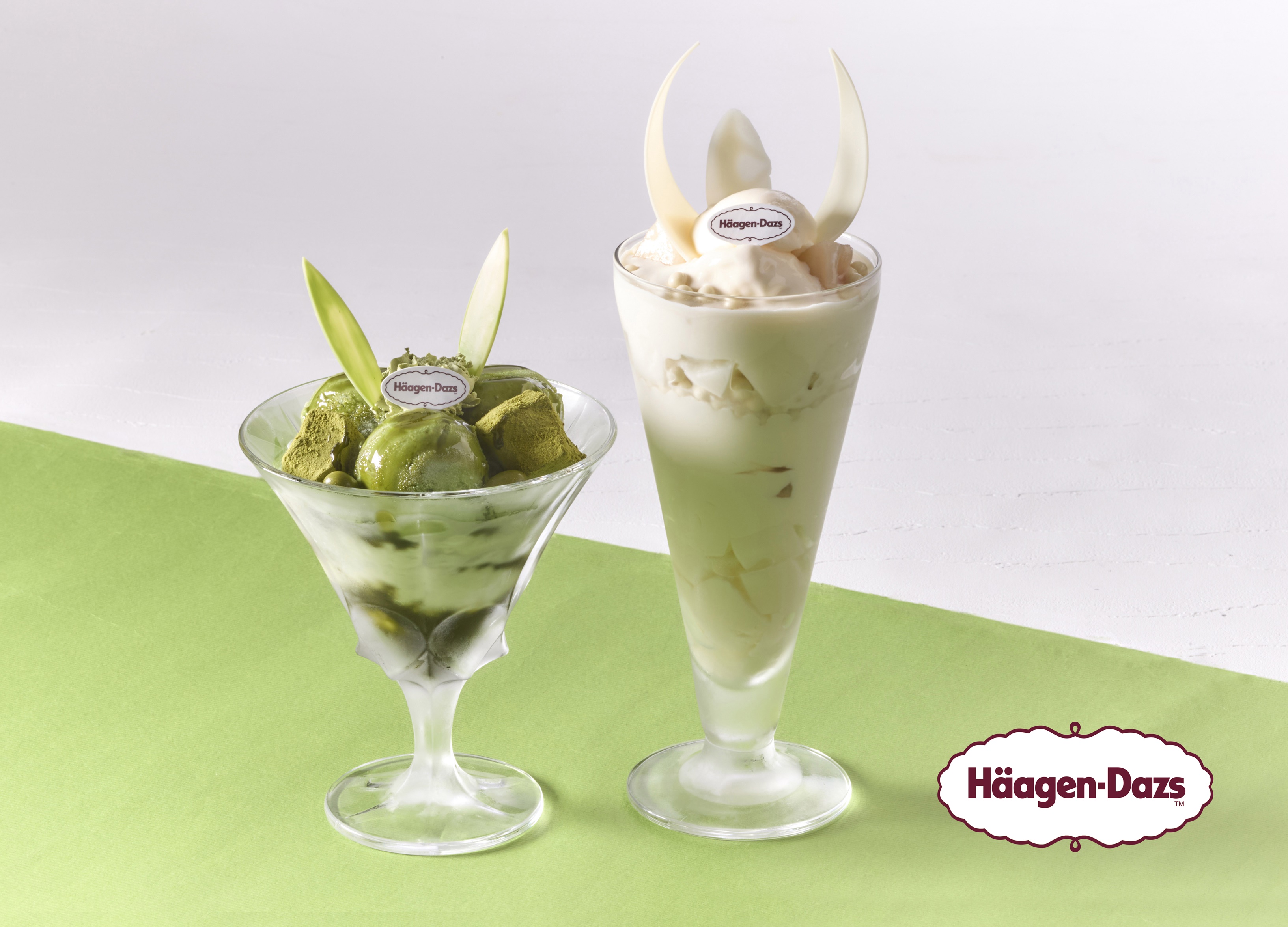 緑の風が心地よい季節に贈る、緑のパフェ。ハーゲンダッツ グリーンティーのアイスクリームをメインに、抹茶わらび餅やカリッとした食感の抹茶チョコレート、とろけるソースにシロップなど抹茶のさまざまな美味しさを重ねました。