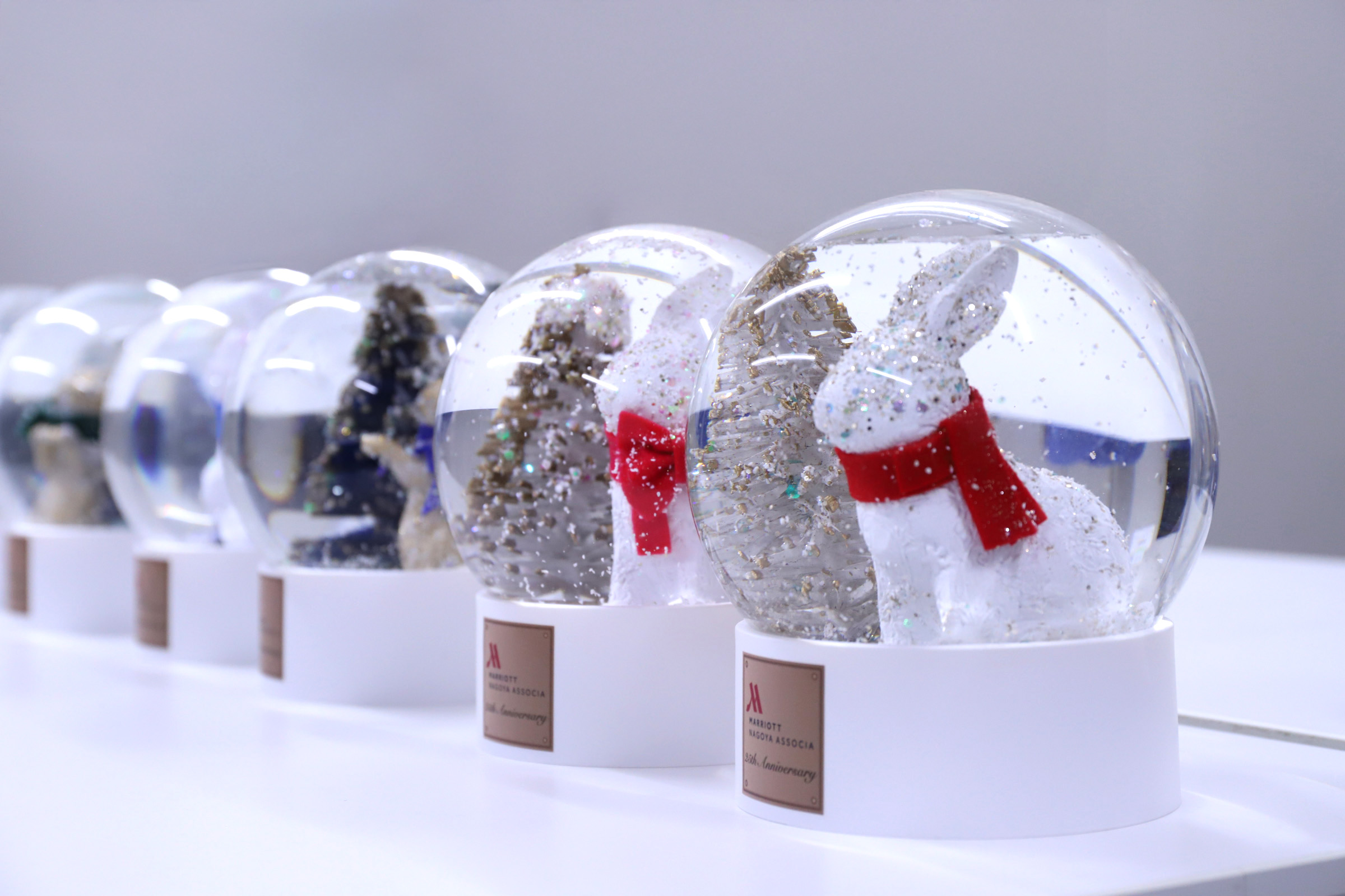 当ホテルは今年で25周年。25周年プロジェクトメンバーのスタッフで各レストランに置くスノードームも制作しました。