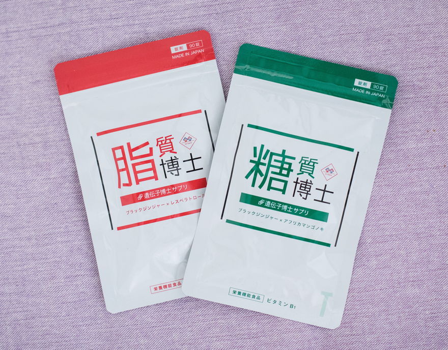 編集部の肥満リスクと対策優先順位を考慮した効果的なサプリメントの提案も。「糖質博士」は、糖吸収抑制する作用があり、摂取カロリーを抑えてくれます。また、「脂質博士」は脂肪燃焼して、溜めない身体へ導きます。足りない栄養素は、サプリメントで補って健康な身体作りをすることも大切。サプリメントの気になる成分は、注目の食材“ブラックジンジャー”をベースに、遺伝子体質別に効果的な成分を配合。自分に合ったサプリメントでより効果が期待できます。