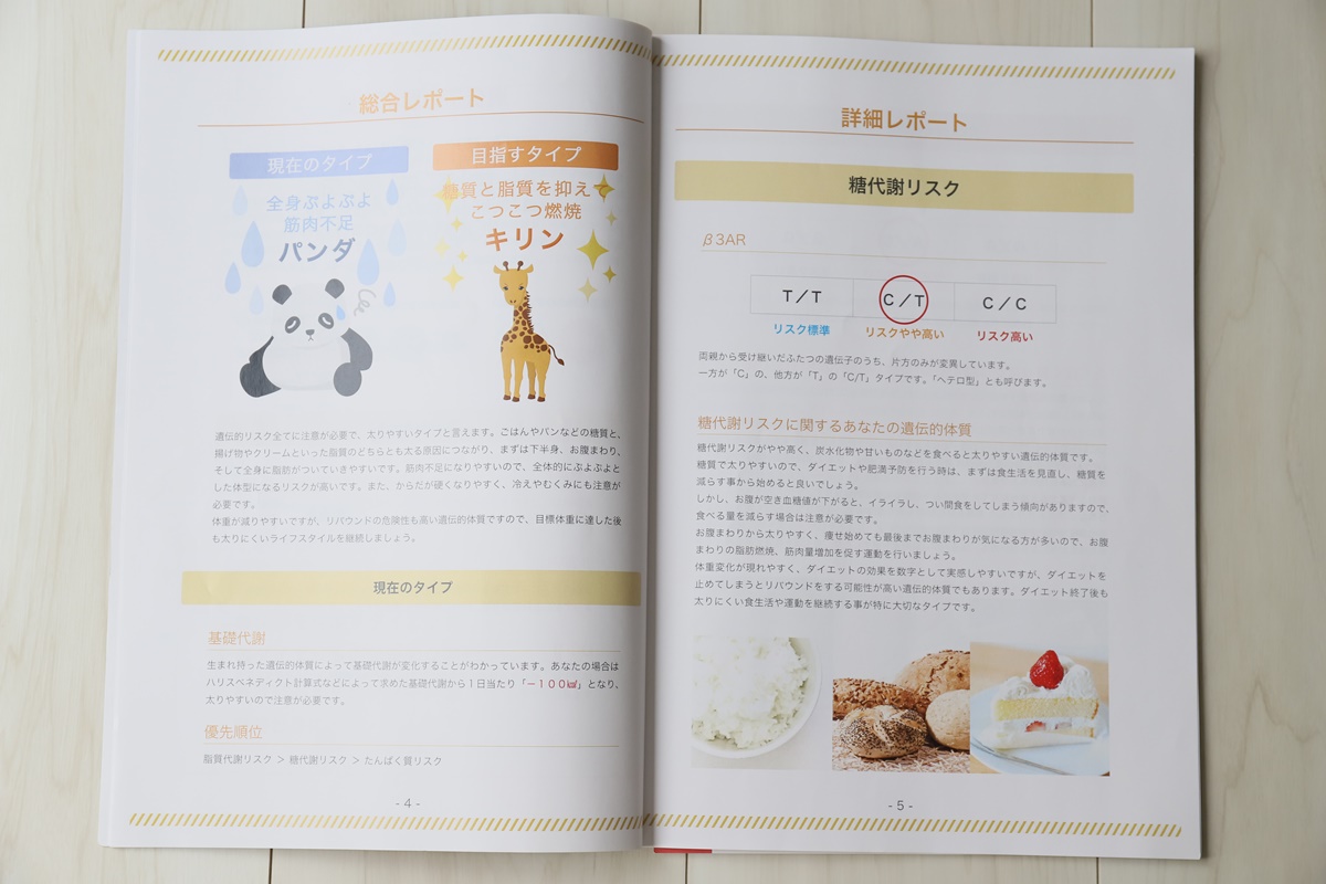 試してみたのは、以前に紹介した「遺伝子博士」。たった3ステップで検査が完了し、ダイエットの遺伝子検査の中では種類の多い33タイプの診断結果に分けられます。糖代謝リスク、たんぱく質リスク、脂肪代謝リスクなどから体質を導き出し、細かい部分まで知ることができます。また、診断結果を基に、生活改善のアドバイスを具体的に教えてくれるので、実際の生活に取り入れやすいのも魅力。